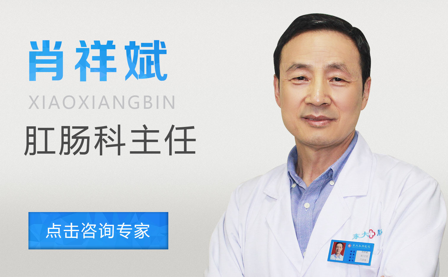 【专家履历】 毕业于武汉同济医科大学医疗系,一直从事肛肠外科临床工作30余年,具有丰富的临床治疗经验。 历任: 中国医师协会肛肠专业委员会会员 湖北宜昌昌达化学工业公司职工总医院院长 【擅长领域】 对痔疮、内痔、外痔、混合痔、血栓痔、肛门直肠性传播疾病外科治疗、肛瘘、肛周脓肿等常见的肛肠疾病的诊疗技术及术后康复领域具有较深的造诣,特别是对运用PPH术、多普勒痔动脉结扎手术等技术诊疗肛肠疾病积累了丰富的成功经验。
